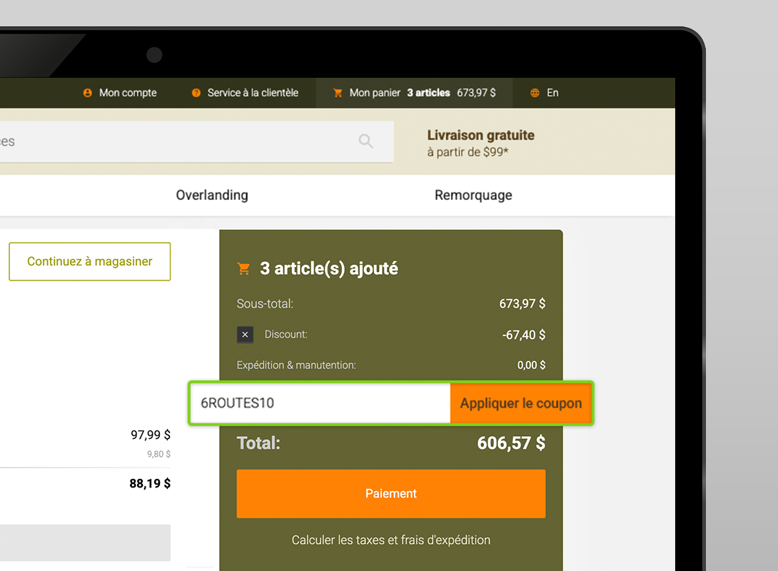 • Utilisez le code 6ROUTE10 à la caisse sur 6Routes.ca